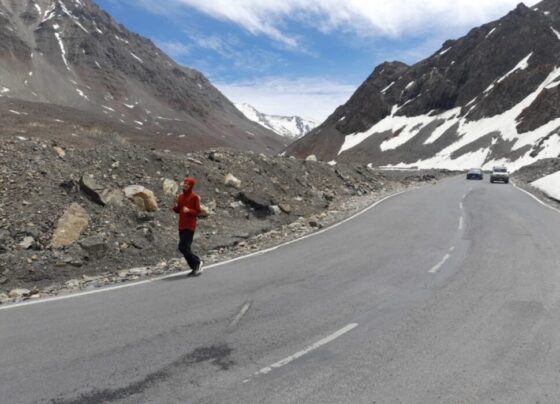 23 Year Old- Lawyer from Hyderabad, Ran from Baralacha La Pass (Zanskar Range) 4,899 Metres Altitude in Himachal Pradesh to Darcha (Lahaul Valley) Himachal Pradesh at 3,338 Metres Altitude- Setting Record.
